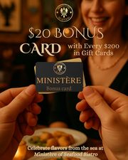 Join us Tuesday to Thursday from 5 pm to 9 pm for an unforgettable 3-course dinner experience at Ministere of Seafood Bistro!